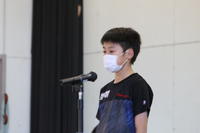 <5年生>宿泊学習の報告と、伝統の「森林太鼓」の披露です。