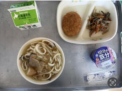 ★牛乳★しっぽくうどんポテトビーフコロッケ★ごぼうのおかかいため1にちぶんのてつぶんヨーグルト