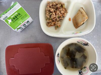★ごはん★じゃがいもとわかめのみそしるさばのしおやき★牛乳★にくそぼろ
