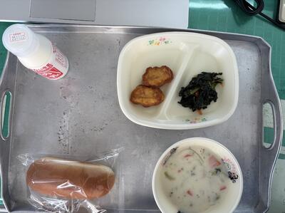 ★バターパン★ホワイトシチューチキンナゲット(2)★牛乳★あおなのソテー