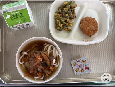 *牛乳★ちゃんこうどん、ほたてクリームコロッケ★おかかやさいかたぬきチーズ