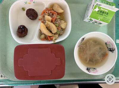 ★ごはん★きのこのみそしるだれいりにくだんご(2こ)★牛乳★じゃがいものそぼろに