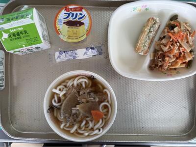 ★けんちんうどんちくわのいそべあげ★牛乳たけのこのとさいためなめらかプリン