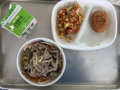 ★牛乳★さんさいうどんぶたにくのコロッケ★きゃべつのにんにくいため